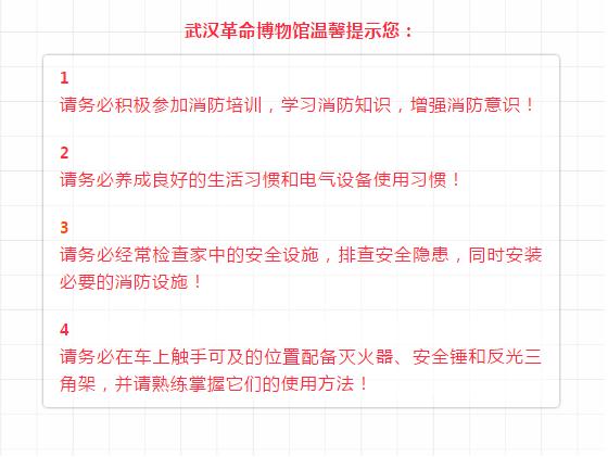 武漢革命博物館是武漢市重要的革命歷史紀念館,下轄中共五大會址、毛澤東同志舊居、武昌農講所、陳潭秋烈士紀念館、起義門等革命遺存,是全國重點文物保護單位。我館始終高度重視消防安全工作,除舉辦消防知識培訓外,我館還積極組織消防培訓,加強消防宣傳,切實維護消防安全,確保全年安全無事故。4月2日,我館榮獲“2018年度全市五星級平安單位”稱號,是全市唯一一家獲此殊榮的文博單位。